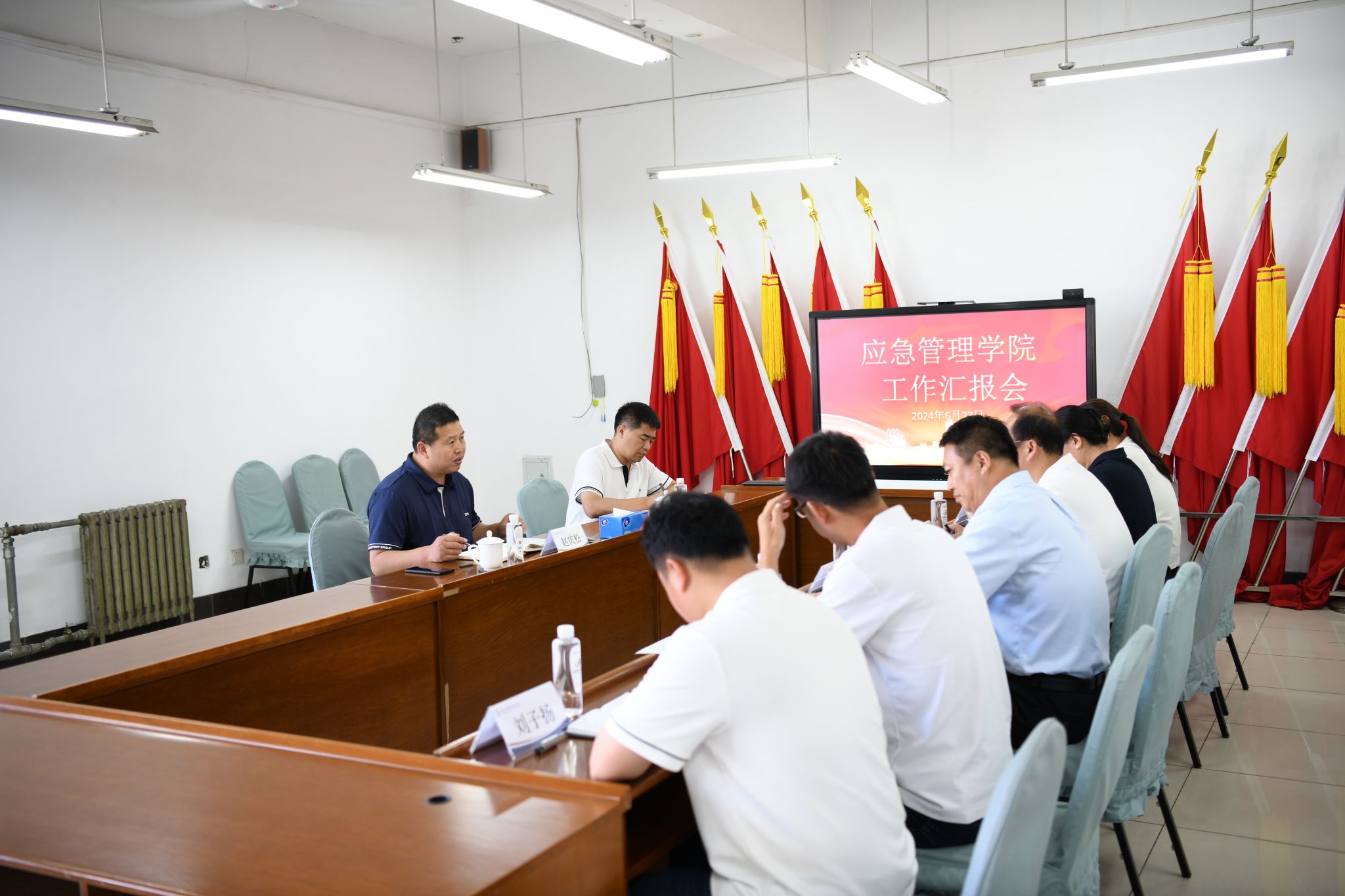 6月27日,学院党委副书记、院长赵庆松赴应急管理学院调研座谈。应急管理学院全体班子成员及全体教研室主任参加调研汇报。座谈会由应急管理学院党总支书记、院长王浩主持。