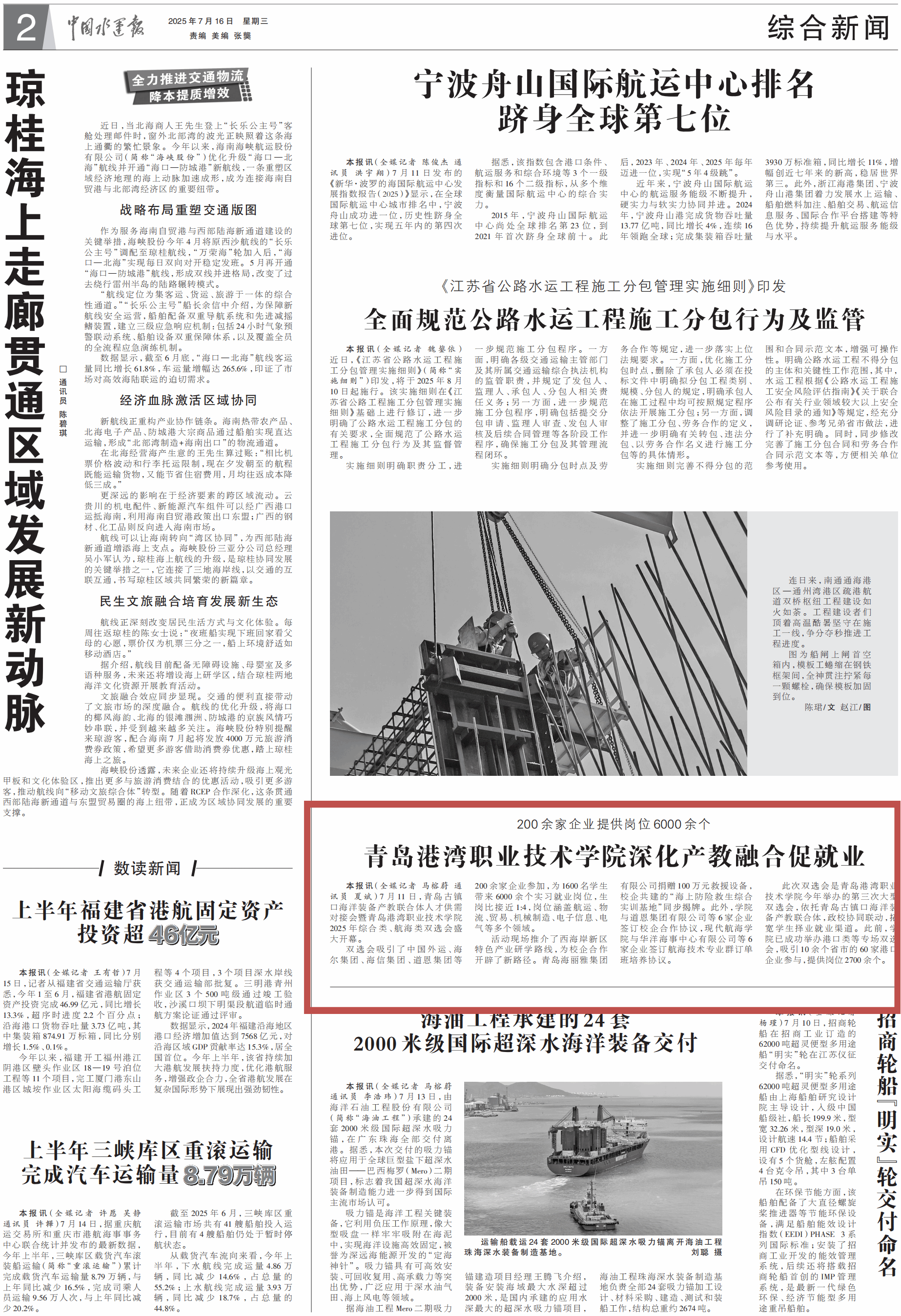 中国水运报:《青岛港湾职业技术学院深化产教融合促就业》